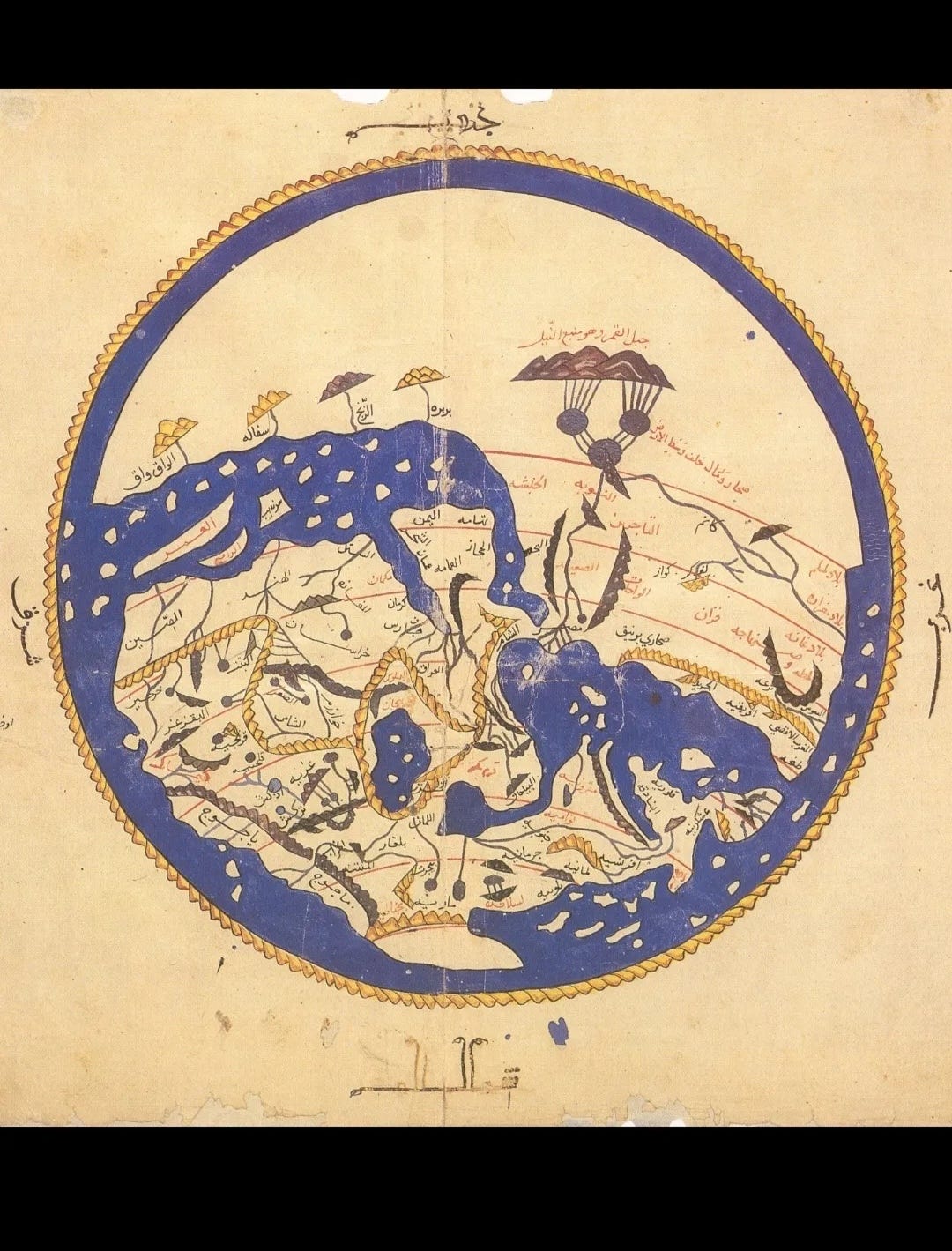 نزهة المشتاق: حيث رسم الإدريسي خرائط لموقع السد في شمال الأرض، قريب من أرض "الصقالبة"، ووصف الجبال المغلقة عليهم.
